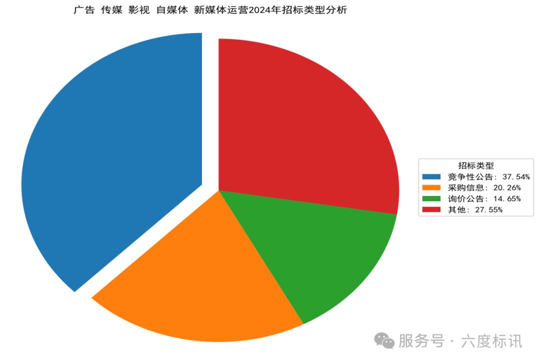 采购信息占比20.26%,位列第二,表明政府或企业在广告媒体影视领域的采购活动较为频繁,且以信息公开的方式进行。