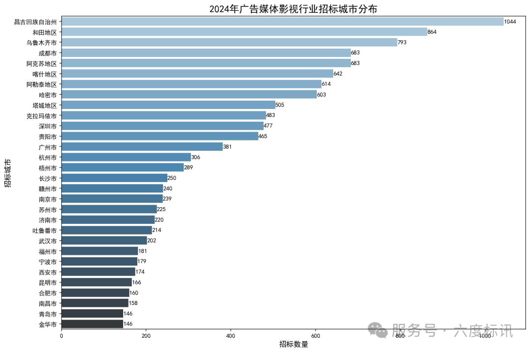 根据2024年广告媒体影视行业的招标数量及城市数据,可以进行以下分析: