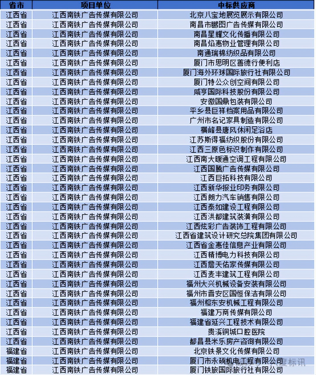 经过数据处理,2024年共统计出全国各省建筑工程项目单位及供应商约11.9万多条信息,以江西南铁广告传媒有限公司这个项目单位为例,共计找出38家供应商单位,涵盖了福建、江西等各省行业优质供应商,部分供应商单位示例如下: