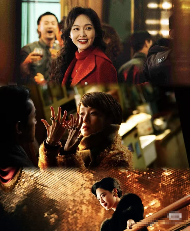 辛芷蕾的李李则是神秘感拉满,红唇大波浪配貂皮大衣,往和平饭店一坐就是气场两米八。