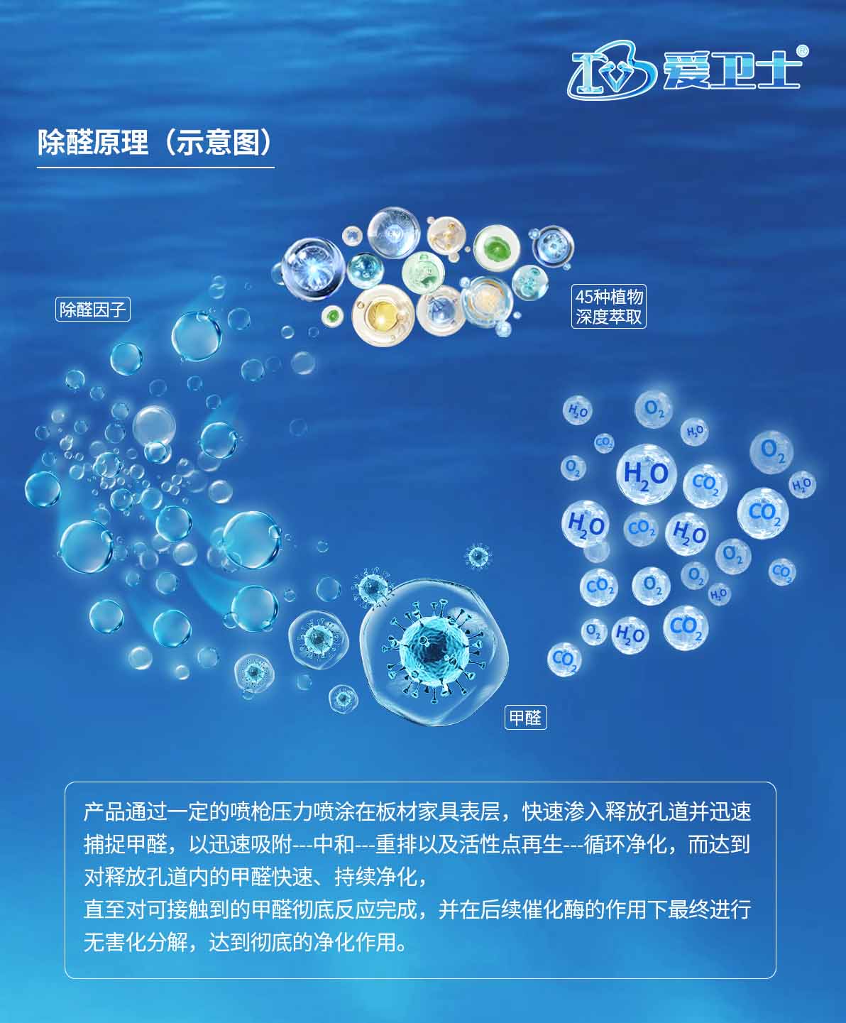 爱卫士的核心竞争力在于其纯植物分解技术。该技术采用45种天然植物提取物,通过螯合反应将甲醛分解为无害的二氧化碳和水,24小时除醛率高达99%。