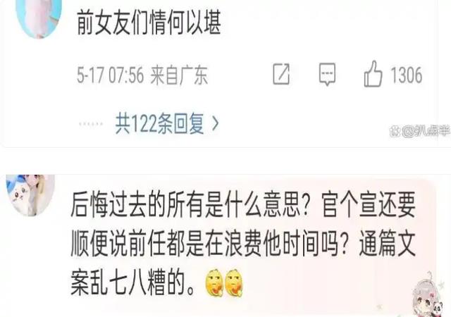 如果真的是想要分享喜悦,为什么不能用一些表达喜悦的文字,反而偏偏要把自己的低情商给暴露出来,因为他的官宣文案完全就是对之前感情的否定!