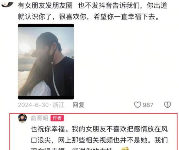 如果说俞灏明在发这一条动态之前有和女方进行沟通,女方又怎么可能没有对这条动态有任何的表示?