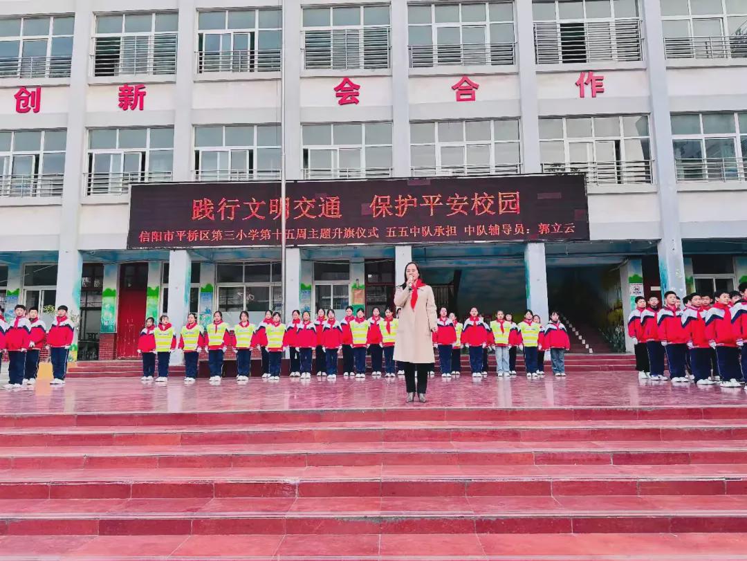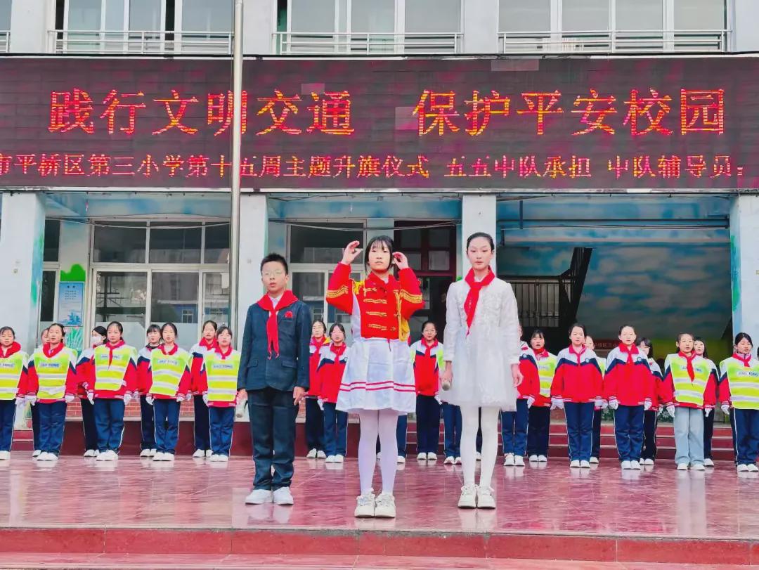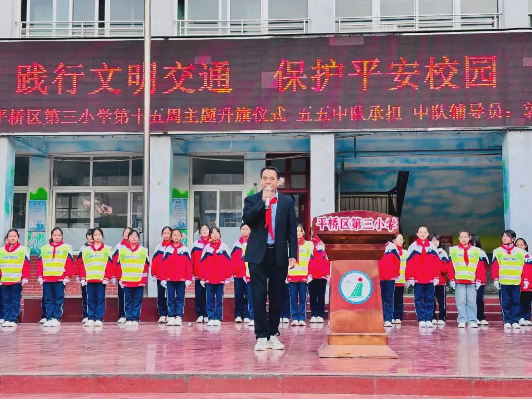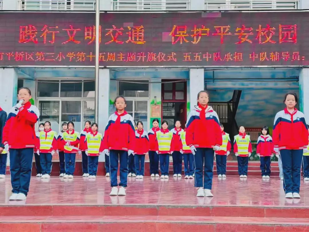 “生命如花,安全似叶,叶茂花更艳;生命如舟,安全似帆,帆稳舟更远。”安全,是我们成长的基石,是我们追逐梦想的保障。为引导学生了解交通安全的重要性,学习交通规则和安全知识,提高安全防护意识,12月8日早上,平桥区第三小学举行了“践行文明交通 保护平安校园”第十五周主题升旗仪式。
