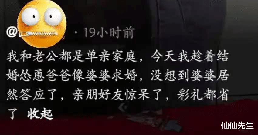 之后,张畅还在朋友圈内公布了父亲和婆婆的这件好事,还开玩笑地表示这下子连彩礼都省了。