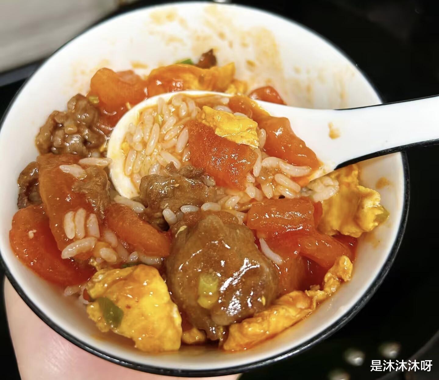 如果要给“治愈系美食”排个名,那这碗番茄牛肉滑蛋饭绝对能稳居榜首。就是简简单单的一碗盖浇饭,却能用浓郁的酸甜、滑嫩的口感,在几分钟内驱散你所有的疲惫。想象一下,金黄的滑蛋裹着鲜嫩的牛肉,浸在红亮诱人的番茄汤汁里,狠狠铺在热气腾腾的白米饭上,光是看着,味蕾就已经在欢呼了。
