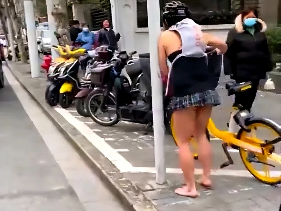 就是这么刺骨寒冷的天气,你敢相信吗?竟然有人穿得如此清凉,女子一身泳衣打扮,头上戴着头盔,后背,胳膊和大腿都露了出来,骑着自行车,又酷又炫的,简直是这条街上最靓的仔。女子清凉的着装和街道上行走的路人形成了鲜明的对比,简直就是冰火两重天的感觉!路人也是一脸不可置信,竟然会有人在这么冷的天里穿着这么一身泳衣就出来了,简直是不要命了,虽然女子的身材不算面条,身上均匀地分布着脂肪,可这么多的脂肪也不能维持女子的体温不变啊!