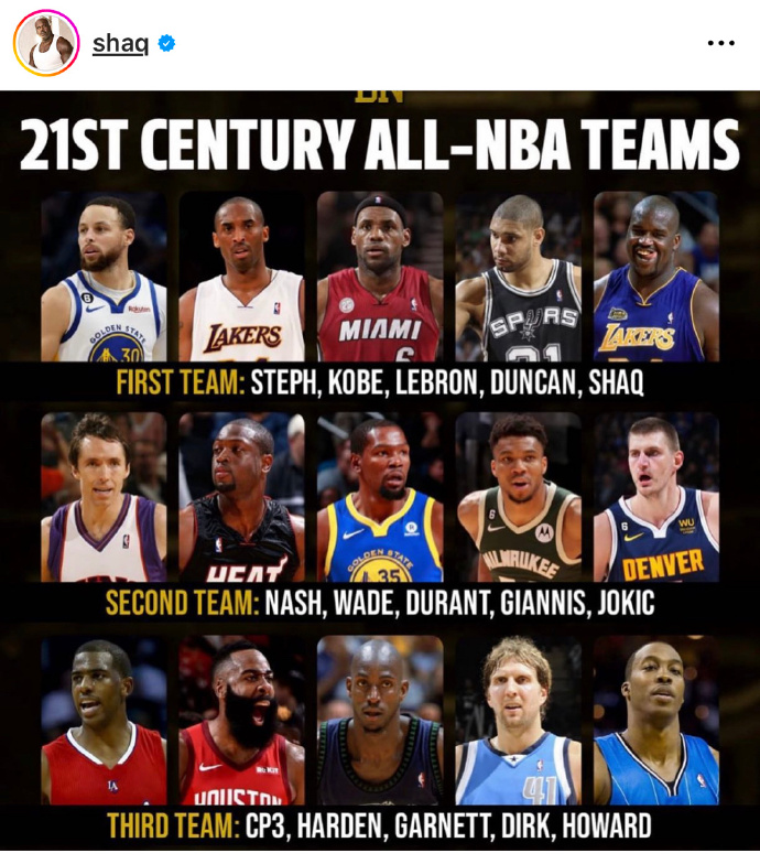 那么,对于奥尼尔评选出的这份榜单,不知各位看官有何见解呢?