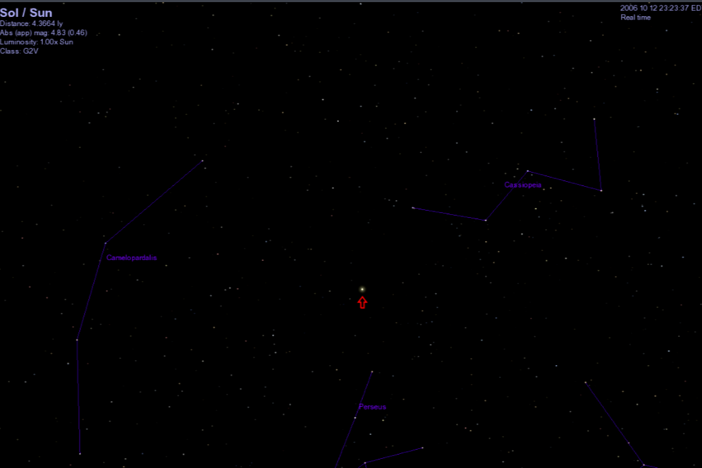 通过计算,这段距离是大约56光年。当我们离开太阳系超过这段距离后,仅靠肉眼就再也看不到太阳了。