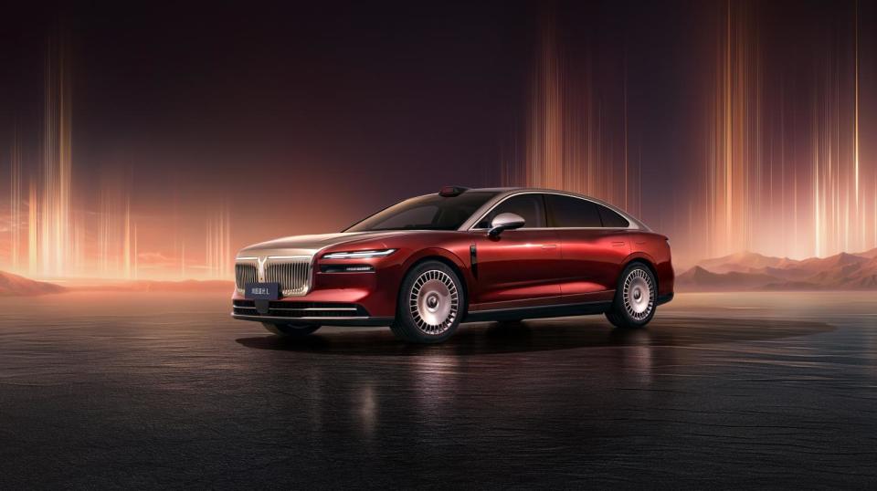 六种车色选择中,包括金耀黑、金銮銮红的双拼方案,也包括杜若白、宸星灰、香槟金、玄英黑的纯色体系。双拼呈现出强烈的旗舰仪式感,而纯色版本则更强调行政气质。整体线条展现出绵密而干净的光影边缘,尤其在腰线处留出了明显的张力面,让车身在静止状态下也具有“前倾感”的视觉动势。
