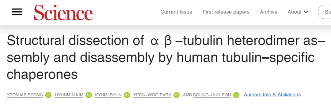该研究以“Structural dissection of αβ-tubulin heterodimer assembly and disassembly by human tubulin-specific chaperones”为题发表在《Science》上。