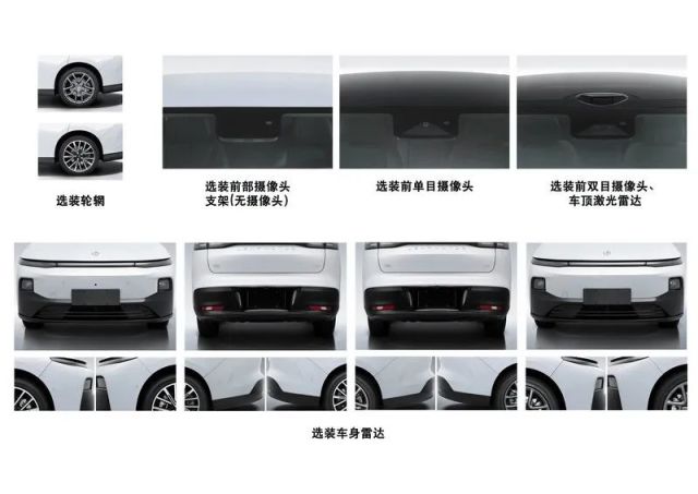 核心配置方面,显示单电机驱动系统,最大功率160kW,搭配磷酸铁锂电池。选装还有车顶激光雷达,高阶智驾估计要向B10看齐。