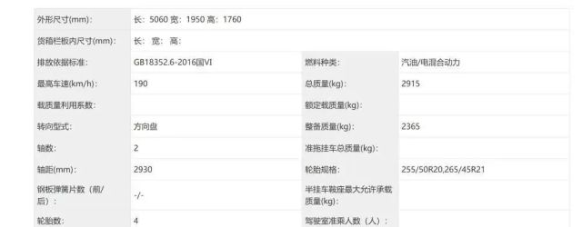 4米8车长+2米82轴距,定位中型SUV,目前申报版本座位为5座。