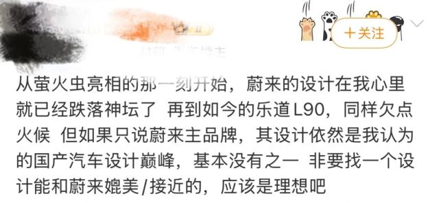 比如前大灯这个“双眼皮”设计,能接受但不太好看。另外还有网友认为,这么大个车,要么就像问界M9一样足够圆润,要么干脆方正点,可L90现在这样“不圆不方”的,实在差点意思。
