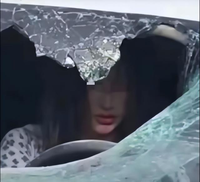 在现场黑衣女子直接将车前窗给砸烂,随后跳上车疯狂进攻。