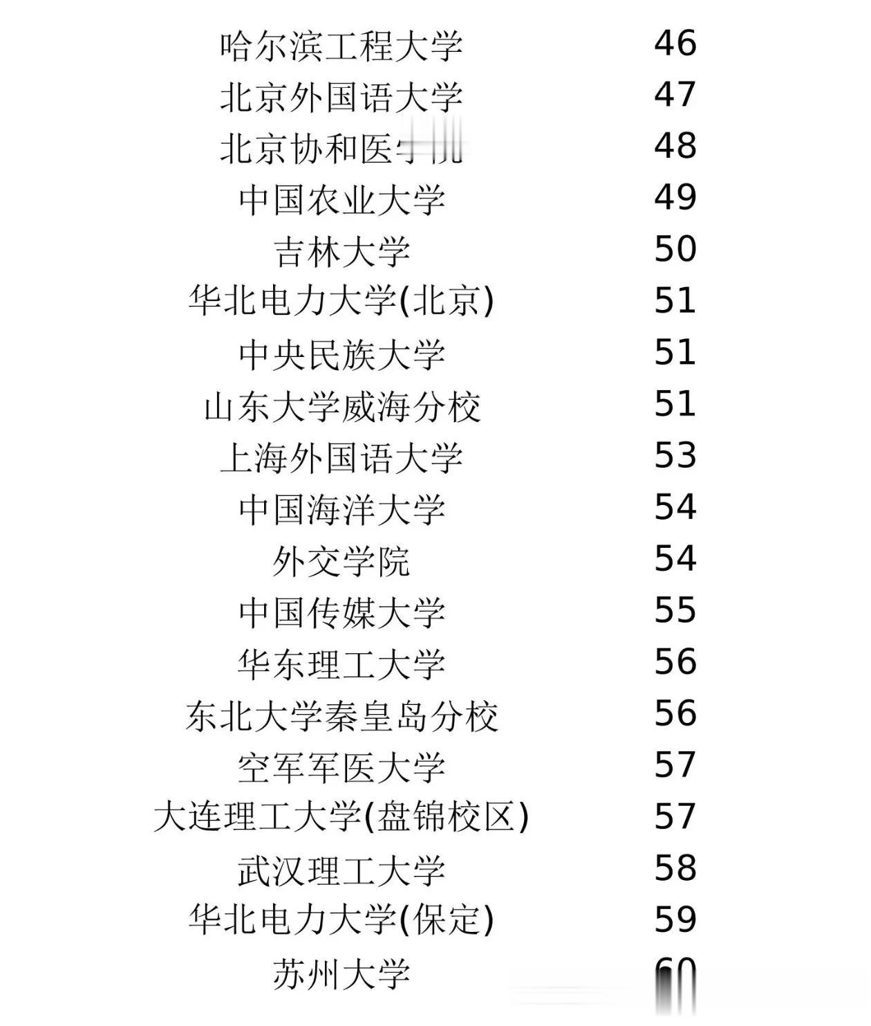 哈尔滨工业大学(深圳)稳居第12位,与本部齐平;哈工大(威海)也进入前25。北邮宏福校区排名飙升24位,与本部并列23。过去被认为“比本部差点意思”的分校区,如今录取难度直逼本部。