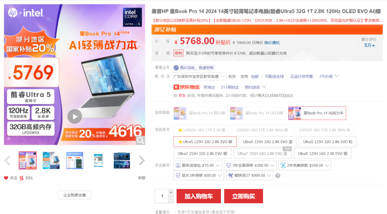 而且最最最重要的是,在乘上国补的末班车后,现在搭载Ultra 5处理器的惠普星Book Pro 14价格可以做到4616元,五千块不到了……