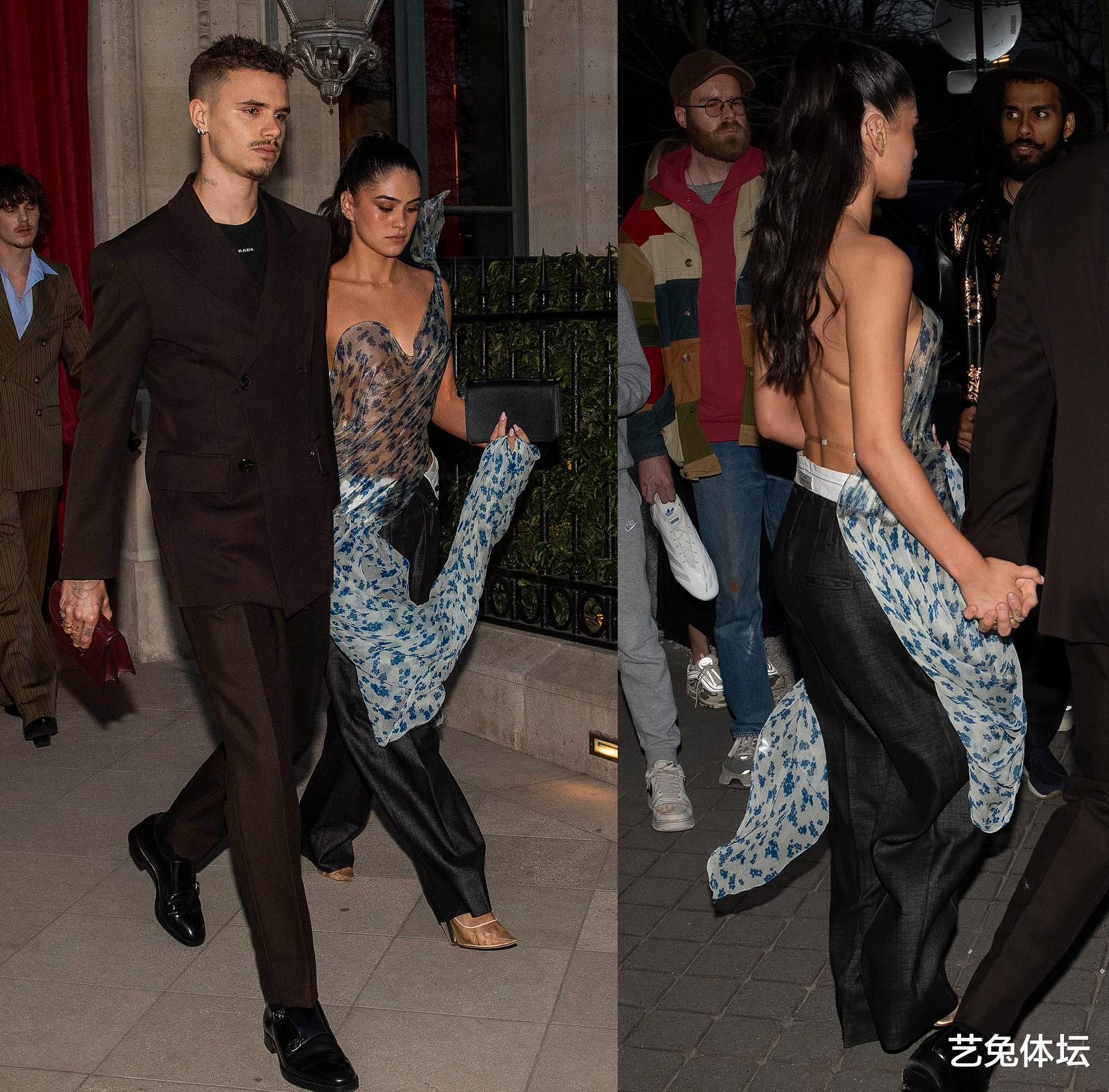 幼子的新女友杰基·阿波斯特尔,同样也是一位模特,身穿简约式黑色缎面长裙,窈窕挺拔的身材比贝嫂年轻时更有吸引力。