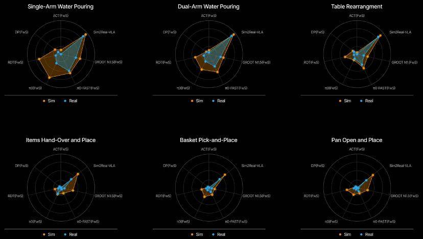 Sim2Real-VLA 在全生成数据训练下,不仅击败了 SOTA,更展现了惊人的鲁棒性。