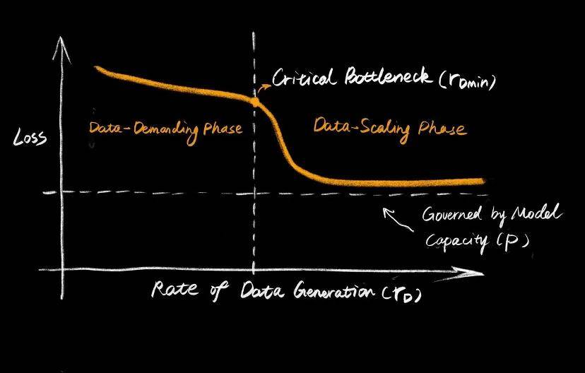 效率定律 (Efficiency Law) 下模型性能与数据生成速率的关系
