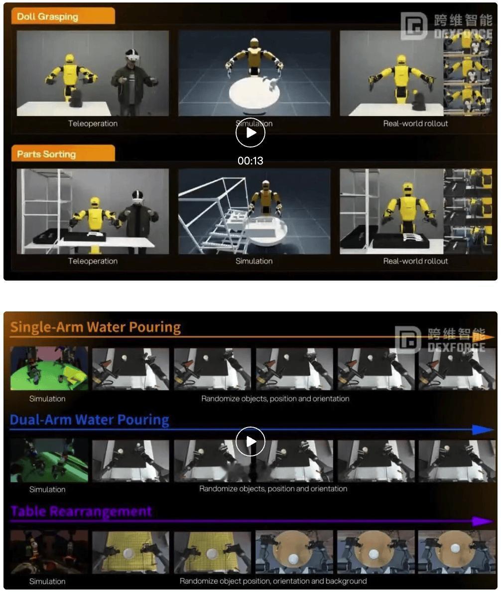 世界生成(Generative Simulation): 引擎不仅是环境,更是造物主。Real2Sim 模块从极少的真实样本中提取物理先验,Gen2Sim 模块则响应语言指令,自动构建出符合牛顿力学等物理规律的 3D 场景与资产。 数据扩增(Data Scaling): 数据不仅要多,还要「难」。系统自动进行视觉增强、物理参数随机化,并剔除那些机器人「够不着」的无效采样。 自我修复(Closed-loop Recovery): 真正的智能来自于从错误中学习。当仿真中的机器人抓取失败,系统会自动生成修正轨迹。这种「失败 - 修正」的闭环,比单纯的成功演示更有价值。这一切都在 GPU 内部并行高速运转,数据如洪流般产生,训练完即销毁,不留下一丝冗余,只留下模型能力的增长。