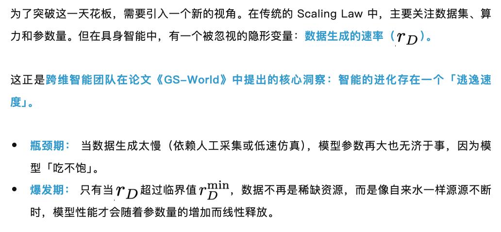 要跨越这个鸿沟,除了物理采集的持续精进,另一种极具潜力的解决方式,就是构建一个能够超高速、自动化生成物理现实的数字世界(跨维智能团队在《GS-World》中详述了这一路径)。