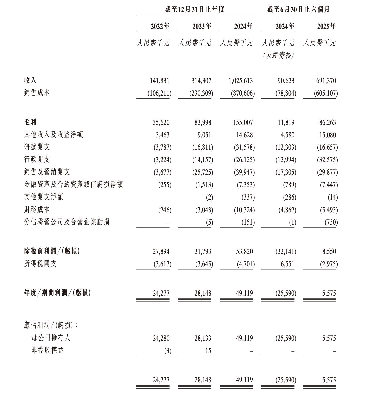报告期内,果下科技的收入和毛利均呈现高速增长:收入分别约1.42亿、3.14亿、10.26亿、6.91亿元,2022-2024年的年复合增长率达168.9%;毛利分别约3562.0万、8399.8万、1.55亿、8626.3万元,2022-2024年的年复合增长率达108.6%;净利润分别约2427.7万、2814.8万、4911.9万、557.5万元。