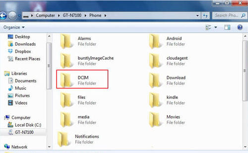 步骤4.找到并双击打开DCIM文件夹>相机文件夹。选择要移动到计算机的照片,然后按Ctrl + C进行复制。