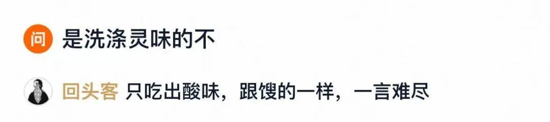 有人问“是洗涤灵味的不?”一位回头客回答“只吃出酸味,跟馊的一样,一言难尽”。