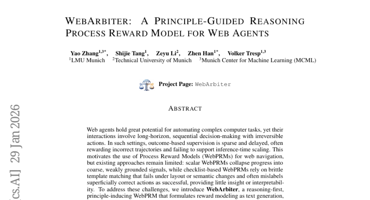 慕尼黑大学的研究团队提出了一个全新的解决方案,叫做WebArbiter(网络仲裁者)。这个系统就像一位经验丰富、善于思考的老师,不仅会看结果,更会仔细分析AI助手的每一步思路。它能够理解AI助手为什么这样做,判断这种做法是否真的能帮助完成任务。