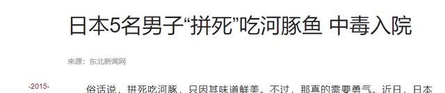 东北新闻网2015年3月4日---日本5名男子“拼死”吃河豚鱼 中毒入院