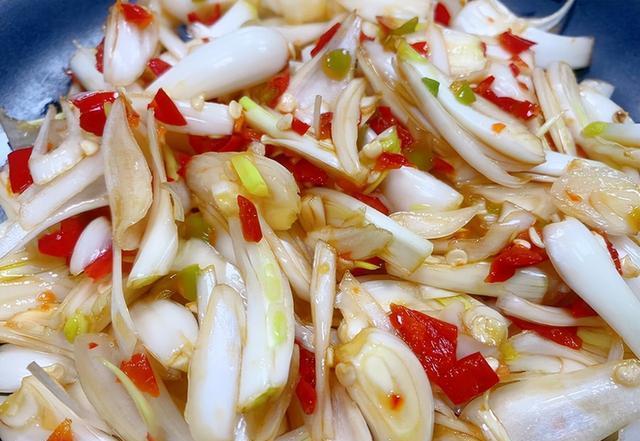 凉拌菜宜作开胃佐餐,需清脆新鲜。今日所选食材为脆嫩小根茎蔬菜——藠头,其口感爽利,十分适合制作凉拌菜品。