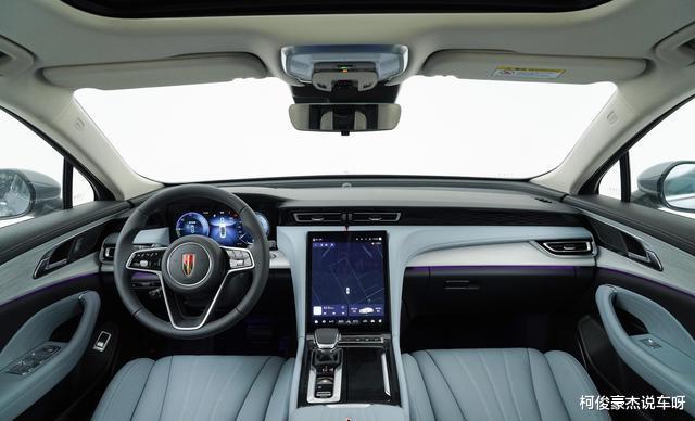 内饰方面,倒是有点新意,搞了个淡蓝色配色,一下子就跟燃油版区分开了。