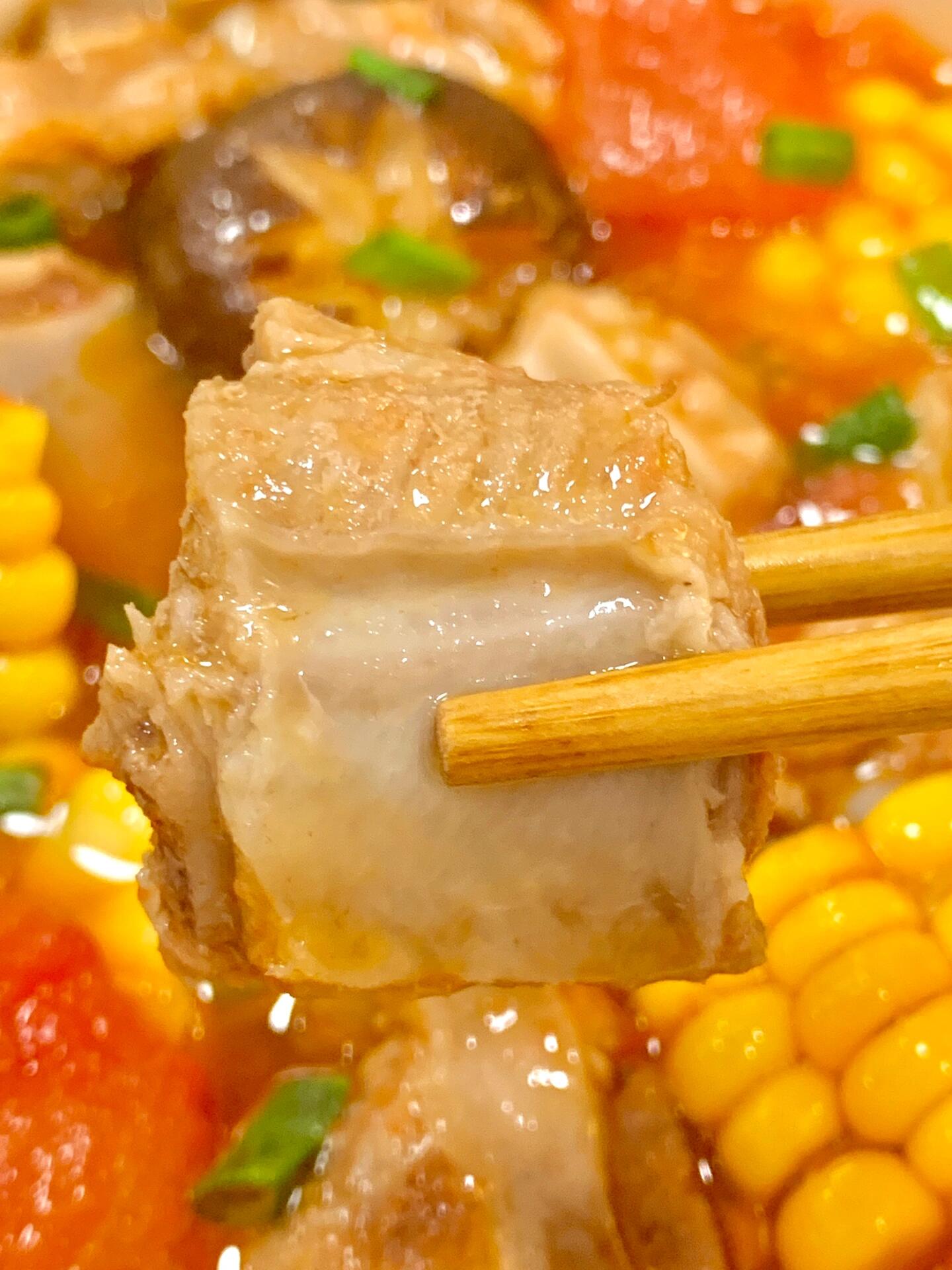 有没有那么一道汤,光是听到名字就觉得浑身暖洋洋的?番茄玉米排骨汤对我来说就是这样的存在。每当秋风渐起,或是冬日寒意袭人时,脑海里第一个跳出来的就是这一锅红黄相间、热气腾腾的汤。那酸甜的番茄、清甜的玉米和醇厚的排骨在锅里相遇,简直是一场味蕾的嘉年华!