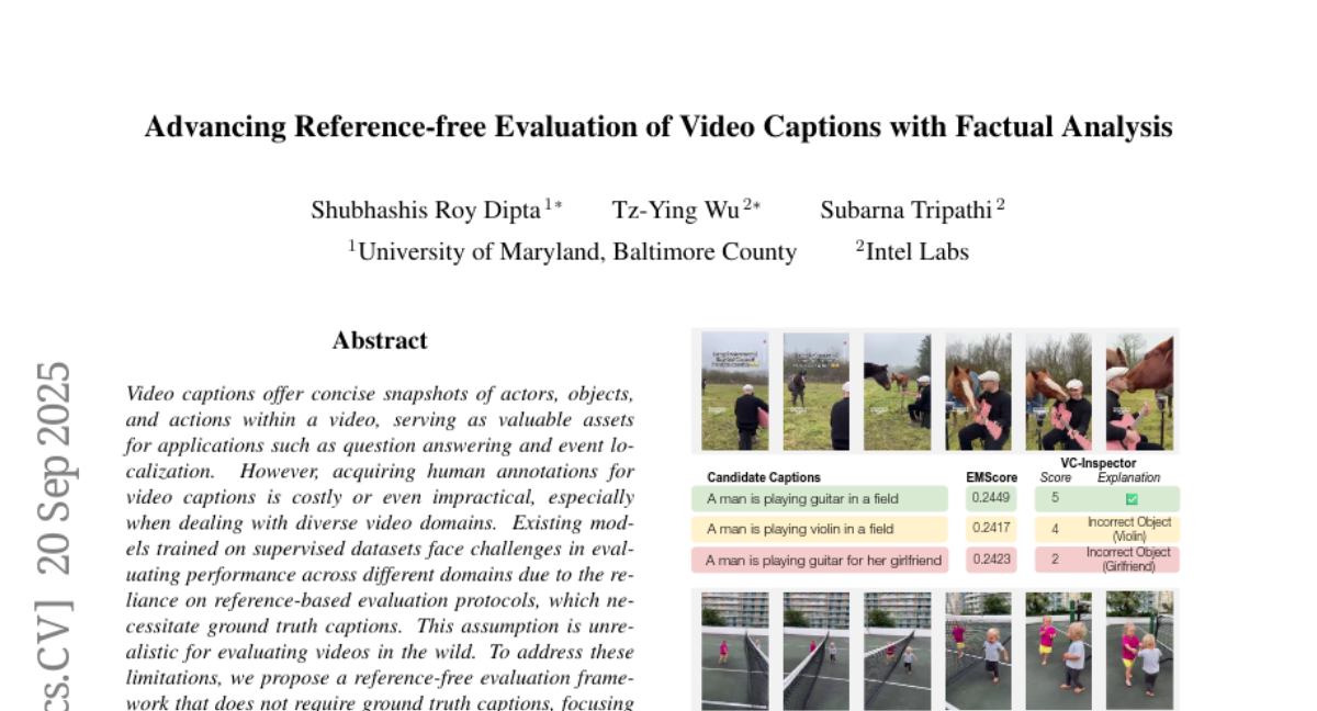 归根结底,这项由马里兰大学和英特尔实验室联合完成的研究,为我们展示了AI技术如何能够更好地服务于内容创作和理解。随着技术的不断完善和应用的不断扩展,我们有理由相信,类似VC-Inspector这样的智能评估工具将在未来发挥越来越重要的作用,让数字世界中的内容质量变得更高,让用户体验变得更好。对于那些希望深入了解技术细节的读者,建议查阅原论文arXiv:2509.16538v1获取更多信息。