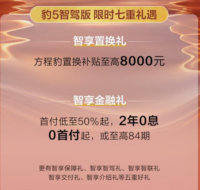 豹5智驾版,置换礼、金融礼、保障礼、辅助驾驶礼、智联礼、交付礼、介绍礼,听着就眼花缭乱。