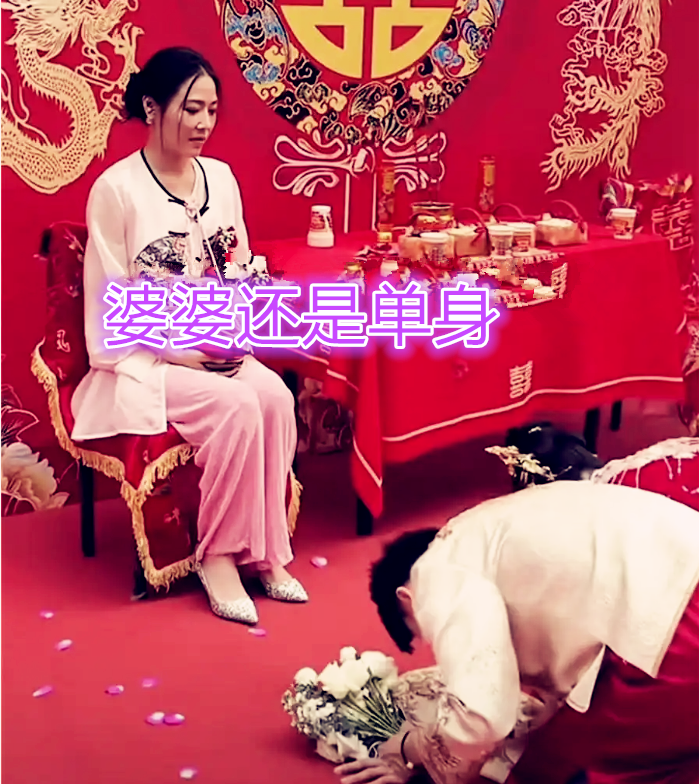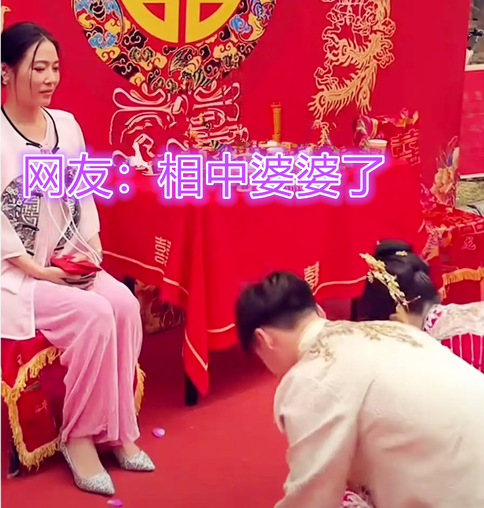 有细心的网友发现,在敬茶的时候,只有喜婆婆,没有看到喜公公,旁边的座位上空空如也,有网友判断,喜婆婆是单身,所以有人留言称{想娶这个喜婆婆}