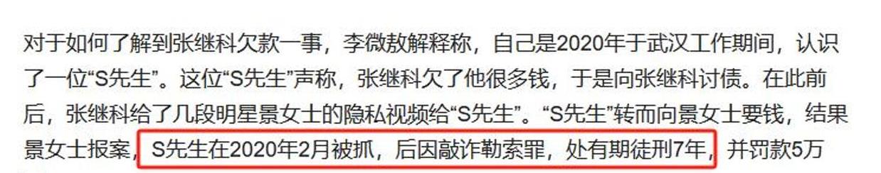 张继科事件新进展李微敖又爆料了,说张继科欠钱还不上,居然拿景甜的私密视频当抵押,总共发给了对方三个视频。对方也不是什么善茬儿,拿着这些视频去威胁景甜,心想这下肯定能讹到钱。结果呢,景甜不但没被吓唬住,反而直接把张继科的债主给告上法院了。