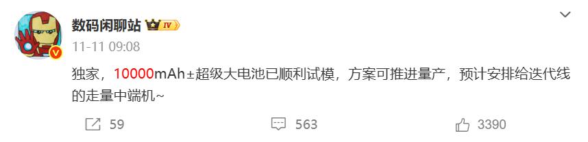 前段时间博主数码闲聊站爆料了一款10000mAh手机,方案可以推进量产,预计就是红米的走量中端手机,可能是note系列或Turbo系列,但目前其他配置暂时不清楚。