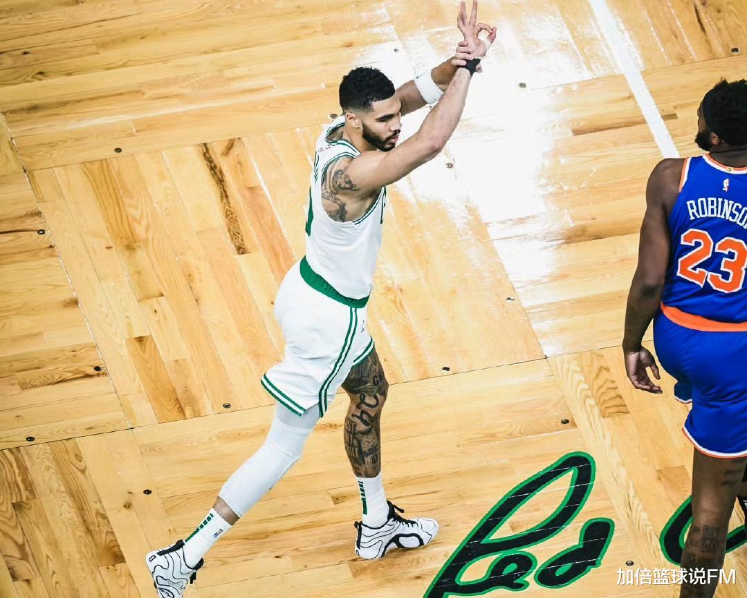 塔图姆,布朗,波尔津吉斯,怀特和霍勒迪。尼克斯这边派出的是,布伦森,唐斯,阿奴诺比,哈特,布里奇斯。首节比赛开始,唐斯跳球获胜,尼克斯率先拿到球权,哈特力压群雄强势补篮打进本场比赛首个进球,怀特底角空位三分球也为绿军开张,哈特急刹车中距离干拔再进一球,布伦森借助掩护,单臂推射同样也有,唐斯的蜻蜓点水补篮稳稳命中,塔图姆飙射超远三分球一箭穿心,阿奴诺比追身三分球同样也有,塔图姆开局阶段手感滚烫,内外开花连得10分,米罗禁区吃饼,翻江倒海制造杀伤,站上罚球线两罚都有。
