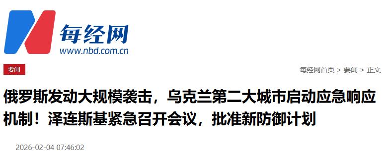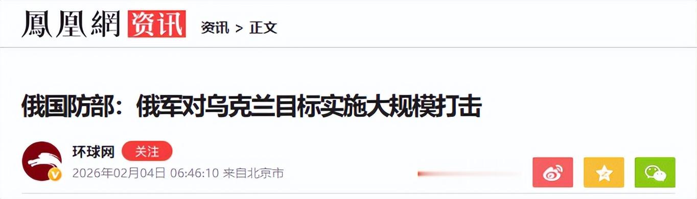 《俄国防部:俄军对乌克兰目标实施大规模打击》环球网2026-02-04
