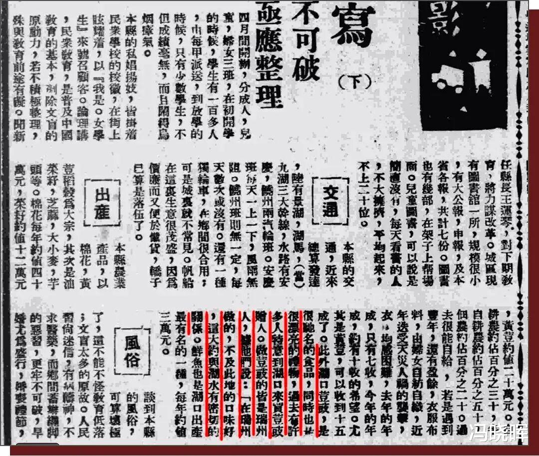 笔者在1936年的《大公报》中,找到一篇名为《湖口的杂写》的连载游记。文章在“特产”一节专门介绍湖口豆豉,兹录如下:
