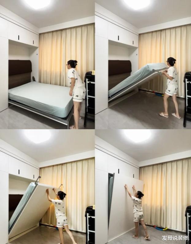 说了这么多双人床的槽点,我们再来看看这几年火遍全网的新式“墨菲床”。要我说,它真的太聪明了,既能当床,又能当墙!
