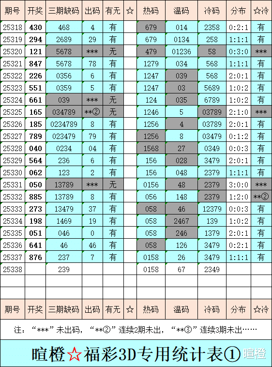 25338期:暄橙福彩3D综合条件(本期将在12月18日21:15开)一、上期回顾 ☆1、上期开奖号:8 7 6。2、和