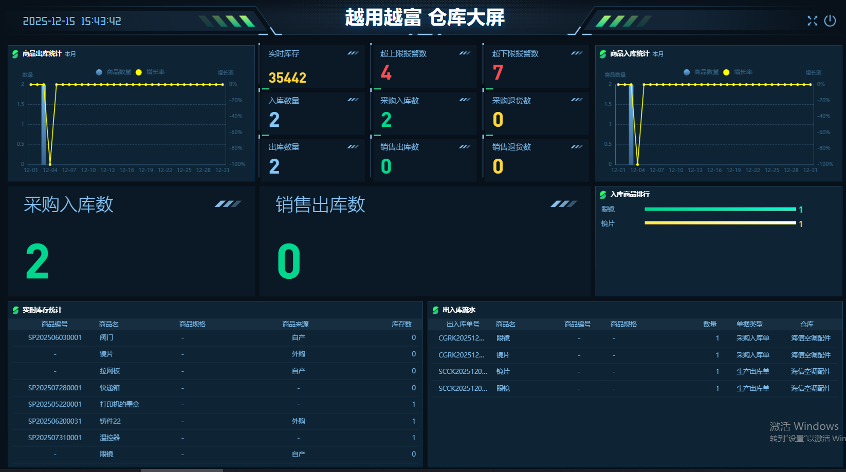 午后路过仓储区,瞥见大屏上跳动的数字 ——“实时库存 35442”“超下限报警数 7”,才忽然觉出:现在的仓库,早不是堆货的 “黑盒子” 了。