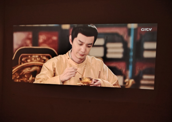 还有370 CVIA亮度(行业普遍标注555lm)在同价位投影中表现突出,就算是白天拉上薄窗帘,画面依然清晰可见,不用像传统投影那样必须关完所有灯才能看。晚上关灯后效果更惊艳,自研AI臻彩画质增强技术会智能优化色彩饱和度、锐度和降噪,播放《舌尖上的中国》时,食物的色泽诱人,暗部细节丰富,亮部高光不会过曝,层次感十足。