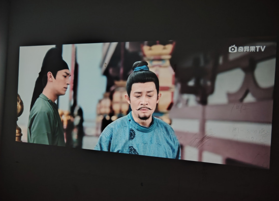卧室场景:氛围感拉满的私人影院。每天下班回家,窝在沙发上用它追剧,100寸的大屏搭配哈曼音响,幸福感直接爆棚。SGS低蓝光认证能有效呵护眼睛,长时间观看也不会觉得干涩疲劳,比盯着手机或电脑屏幕舒服太多。睡前还能投射天花板,躺着看电影,不用再坐得端端正正,放松又惬意。