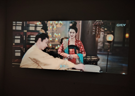 墙面颜色自适应功能也很实用!我没有装幕布,直接投射在米白色的墙面上,投影会自动调整色彩,避免墙面颜色影响画面效果,不用额外花钱买幕布也能享受优质画质,对租房党太友好了。