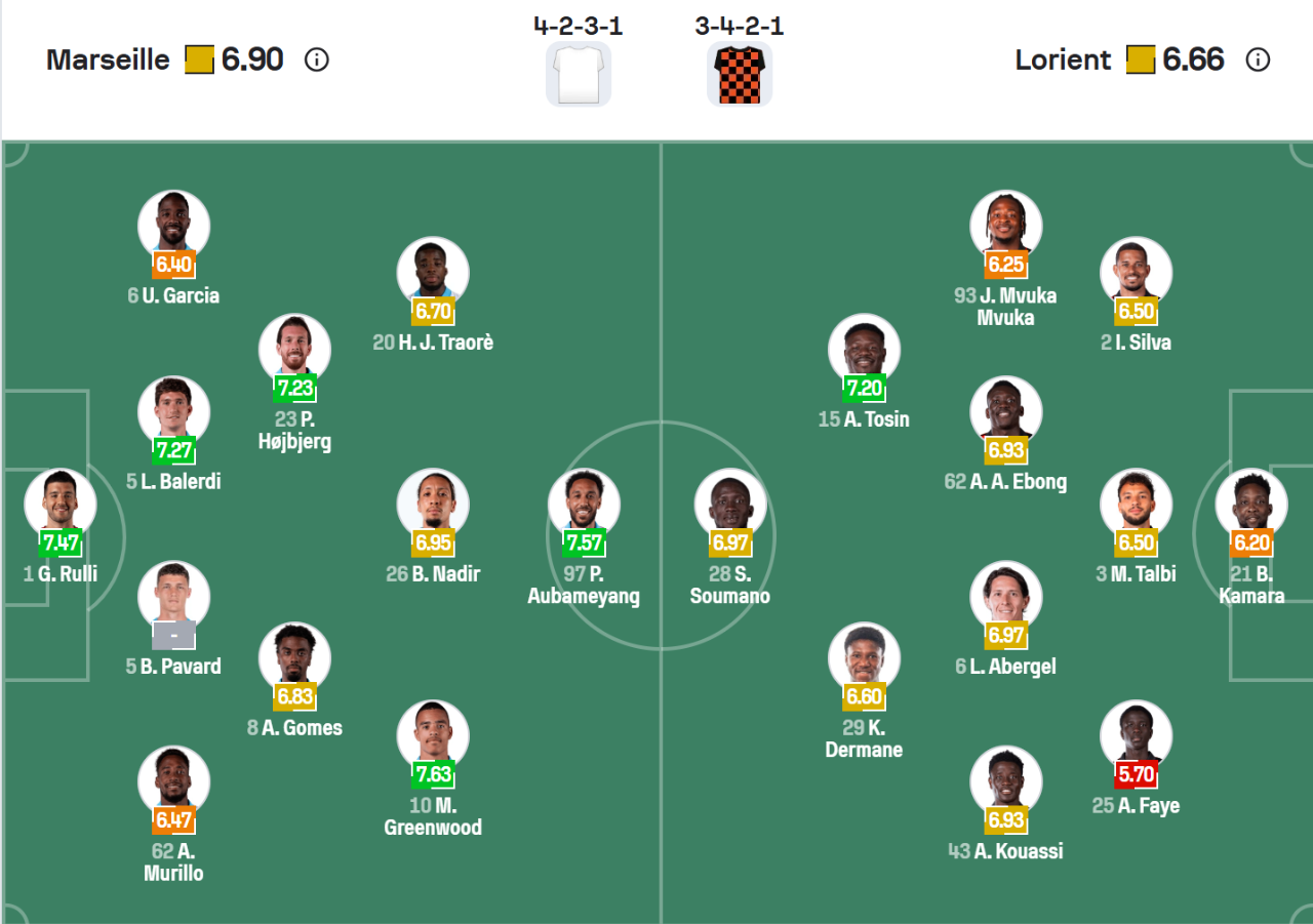 马赛:马赛4-2-3-1反击面对弱队打高位压迫,场面上能持续压迫对手创造不少进球机会,但球队目前后防线状态低迷在如此开放的打法之下,后防反击漏洞放大,此前面对进攻能力一般的雷恩和巴黎FC均有反击丢球,此役面对新赛季进攻表现不错的洛里昂,马赛防守难言轻松。