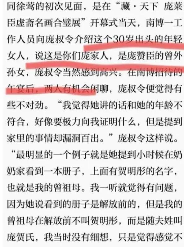 徐莺自称是庞家的后人,南博事件中,几次提到她的名字。